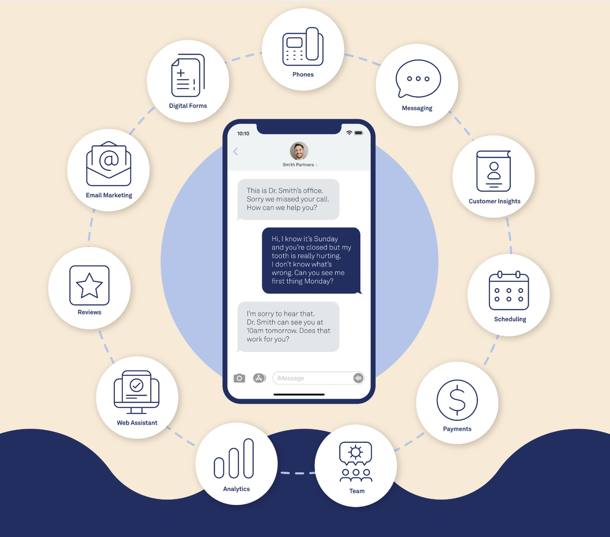 While the trio initially launched with a pretty simple phone system that integrated with Dentist's Practice Management Software, they really scaled and evolved their product suite overtime, adding: Texting Email Reviews Scheduling & Appointment Setting Digital Forms & more!