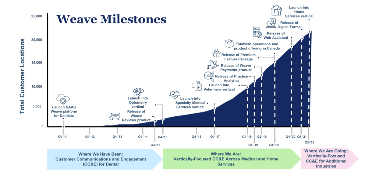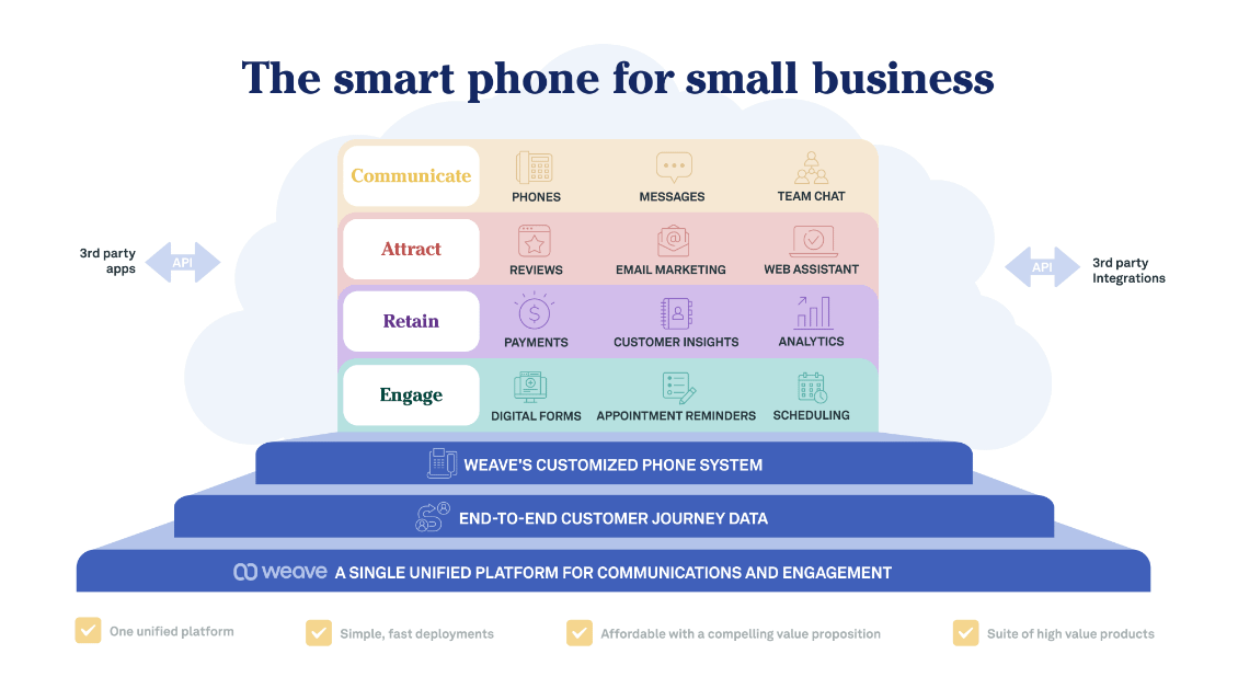 Weave has continued on w/o the Founders and expanded beyond dentists. Their aim now is create the premier customer experience platform for small and medium-sized businesses across all verticals. They want to support businesses attract, communicate, and engage their customers.