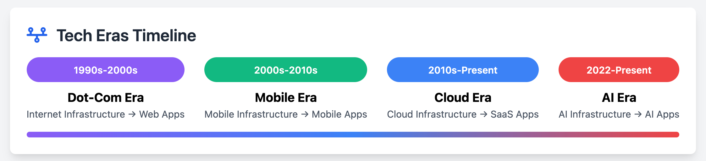 Back in the ‘90s, the internet was a crazy, unproven idea. VCs saw the potential and went all-in on infrastructure—think Cisco (backed by Sequoia) for networking gear and AOL (Kleiner Perkins) to get people online.