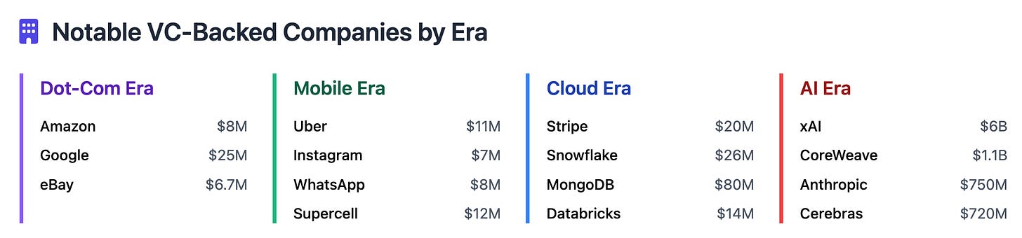 Before the iPhone dropped in 2007, VC was backing the enablers—Clearwire ($100M+ from Kleiner Perkins) for mobile broadband, Qualcomm for chips, etc. They backed the infrastructure technologies that made the iPhone moment possible…
