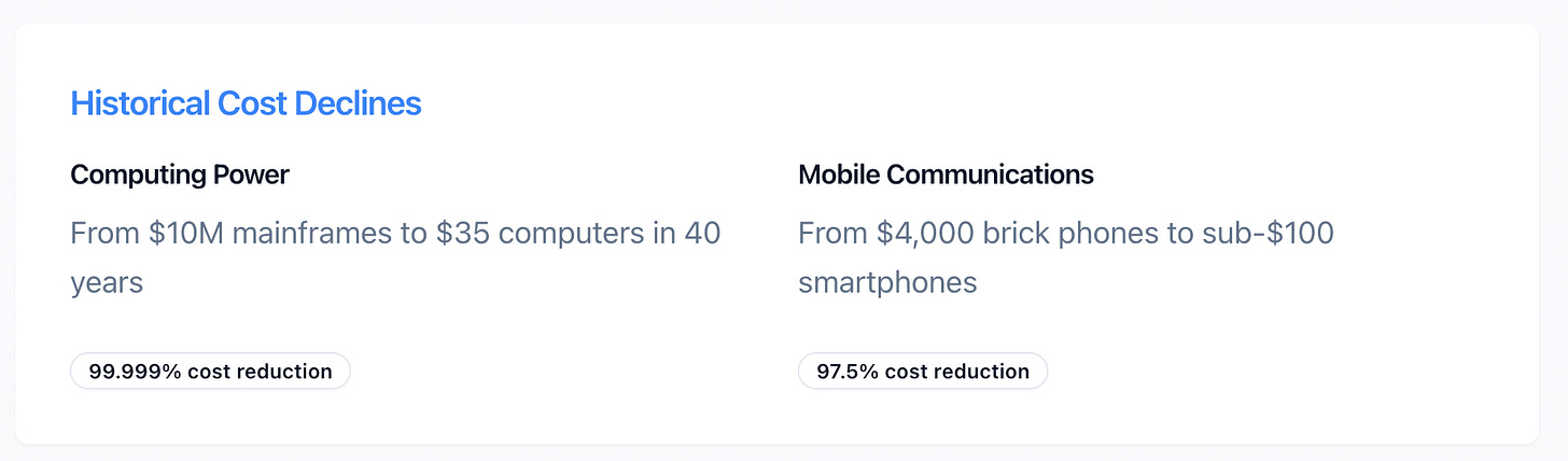 The fundamental forces that drove down costs in previous technology cycles are already at work in AI. Competition among cloud providers, advances in chip design, algorithmic improvements, and the relentless march of Moore's Law (in various forms) will inevitably make AI compute cheaper and more efficient.