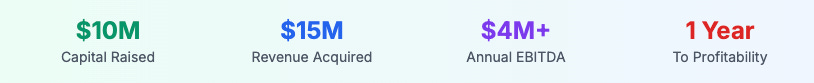 Cabana's financial model demonstrates the capital efficiency potential of AI roll-ups. The company has achieved remarkable efficiency in its capital deployment:
