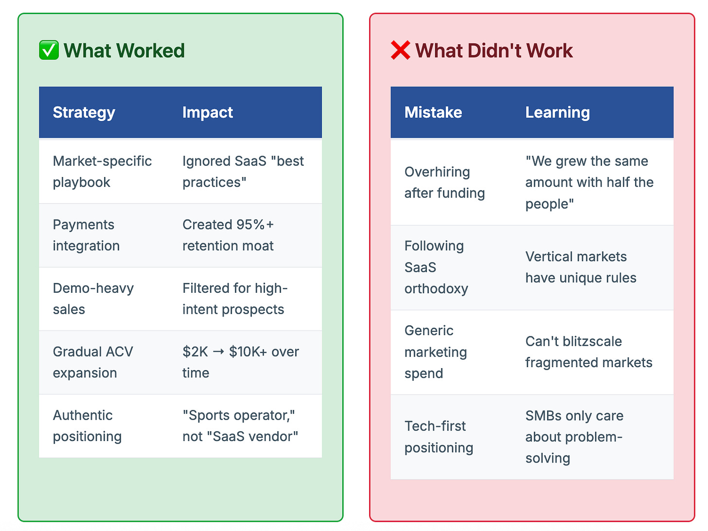 Perhaps the most valuable insights from Brian's journey come from understanding what didn't work as much as what did. The League Apps story is filled with counterintuitive lessons that challenge conventional SaaS wisdom and provide a roadmap for other entrepreneurs attacking fragmented markets.