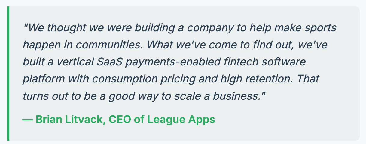 Brian Litvack didn't set out to build a "vertical SaaS payments-enabled fintech platform." He wanted to help communities organize sports. What emerged is a masterclass in attacking hyper-fragmented SMB markets that most VCs would run from.