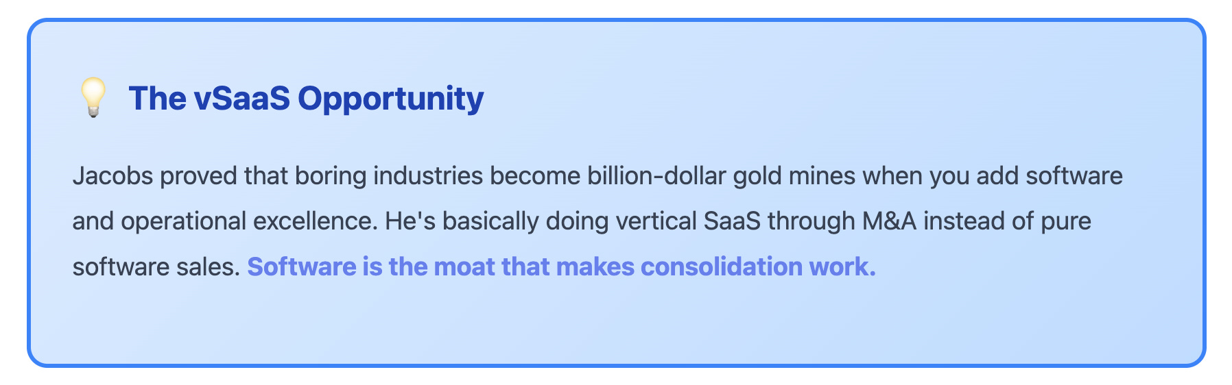 Here’s what separates Jacobs from traditional private equity roll-ups: He weaponizes technology.
