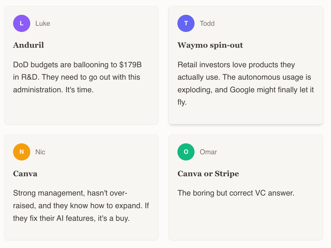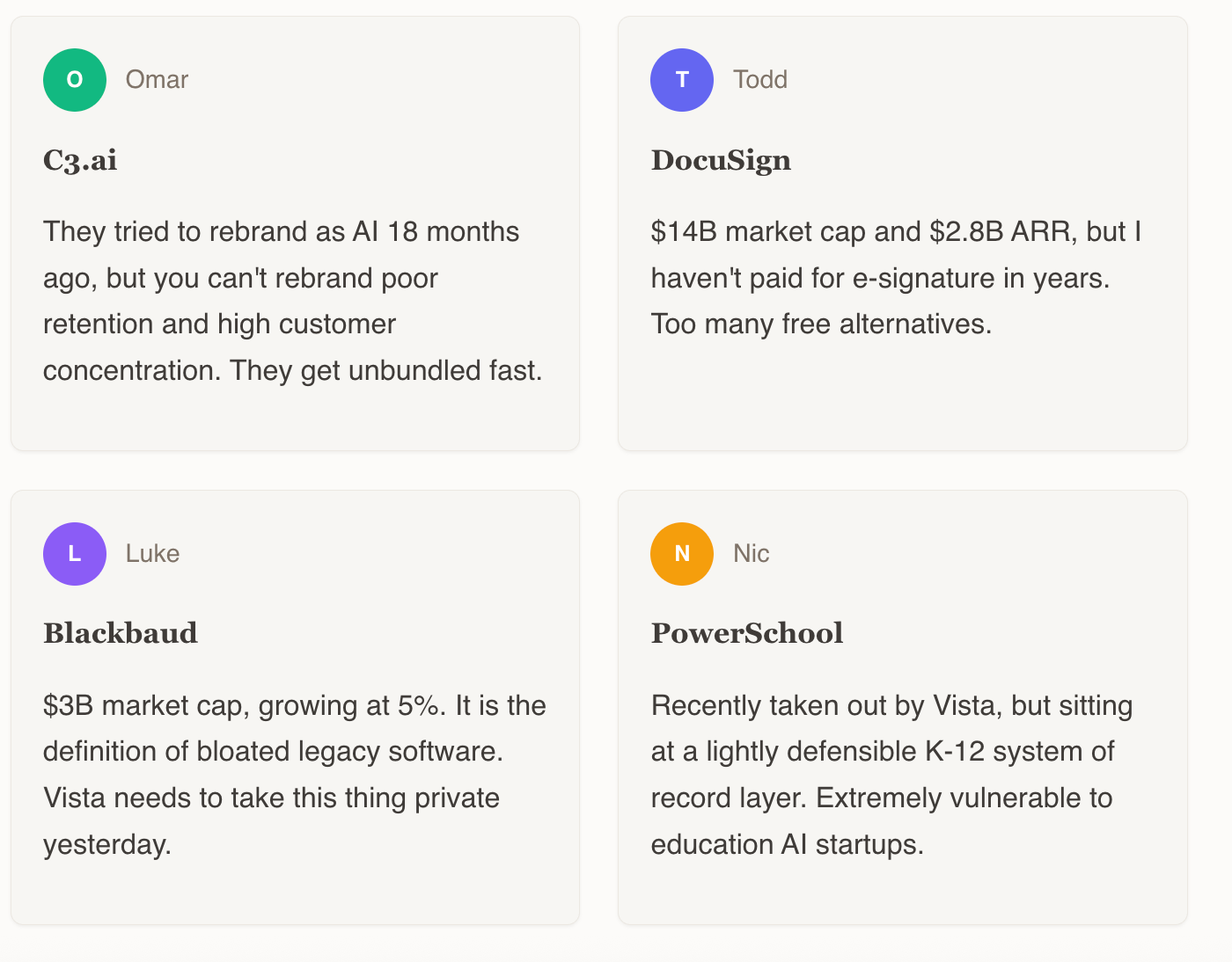 Nic is officially a bear. He sees it as a catch-all for capital-intensive, uncertain categories. The group was nodding in agreement.