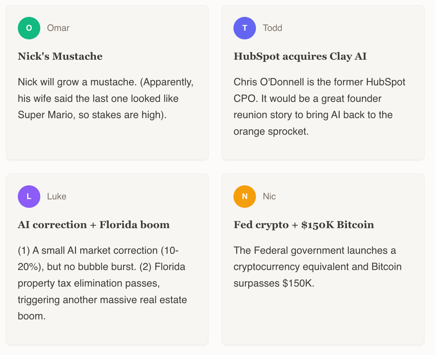 Nic and I brought in the heavy hitters for some loving predictions on 2026. Let me know what your predicting for 2026. Reply to this email and let’s have some fun together…