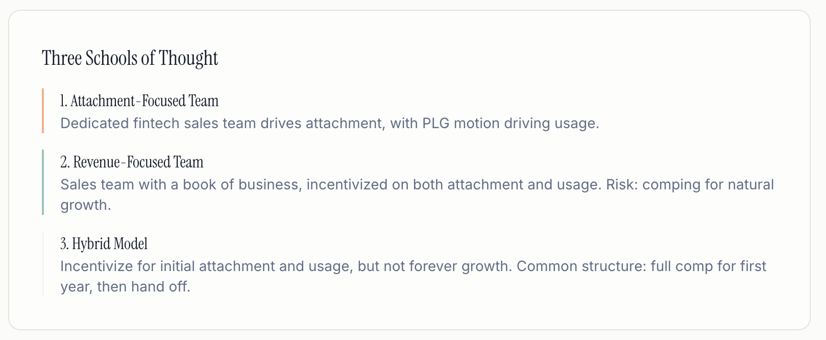 Luke shares a structure that worked: “We comped similarly to 7-12% of first-year ACV on the payments side, but they received like 10-20% upfront. Then they got the other 80% once that customer achieved full utilization.” This prevented sellers from putting in crazy GMV expectations and kept them engaged through implementation.