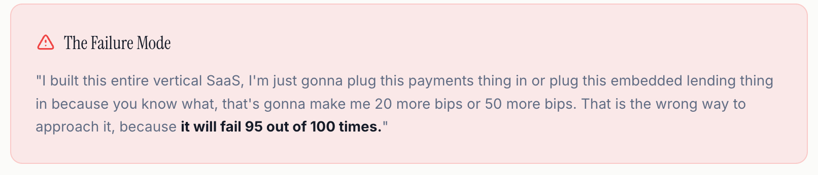 In the rapidly evolving landscape of vertical software, embedded fintech has emerged as the defining battleground for sustainable growth. But the path from “we should add payments” to a thriving fintech ecosystem is littered with costly mistakes and false starts.